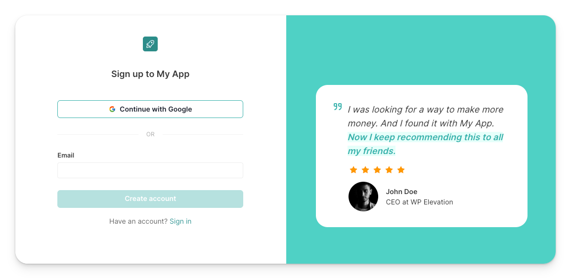 With NexAuth you can create two types of authentications, Magic Links and Social Authentication which includes using Google, Twitter, Facebook, LinkedIn, Slack, and 60+ more services to sign up your users.